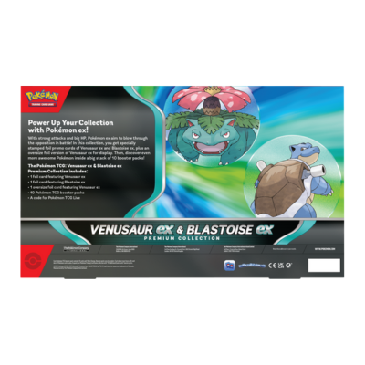 The Pokémon TCG: Venusaur ex & Blastoise ex Premium Collection includes: